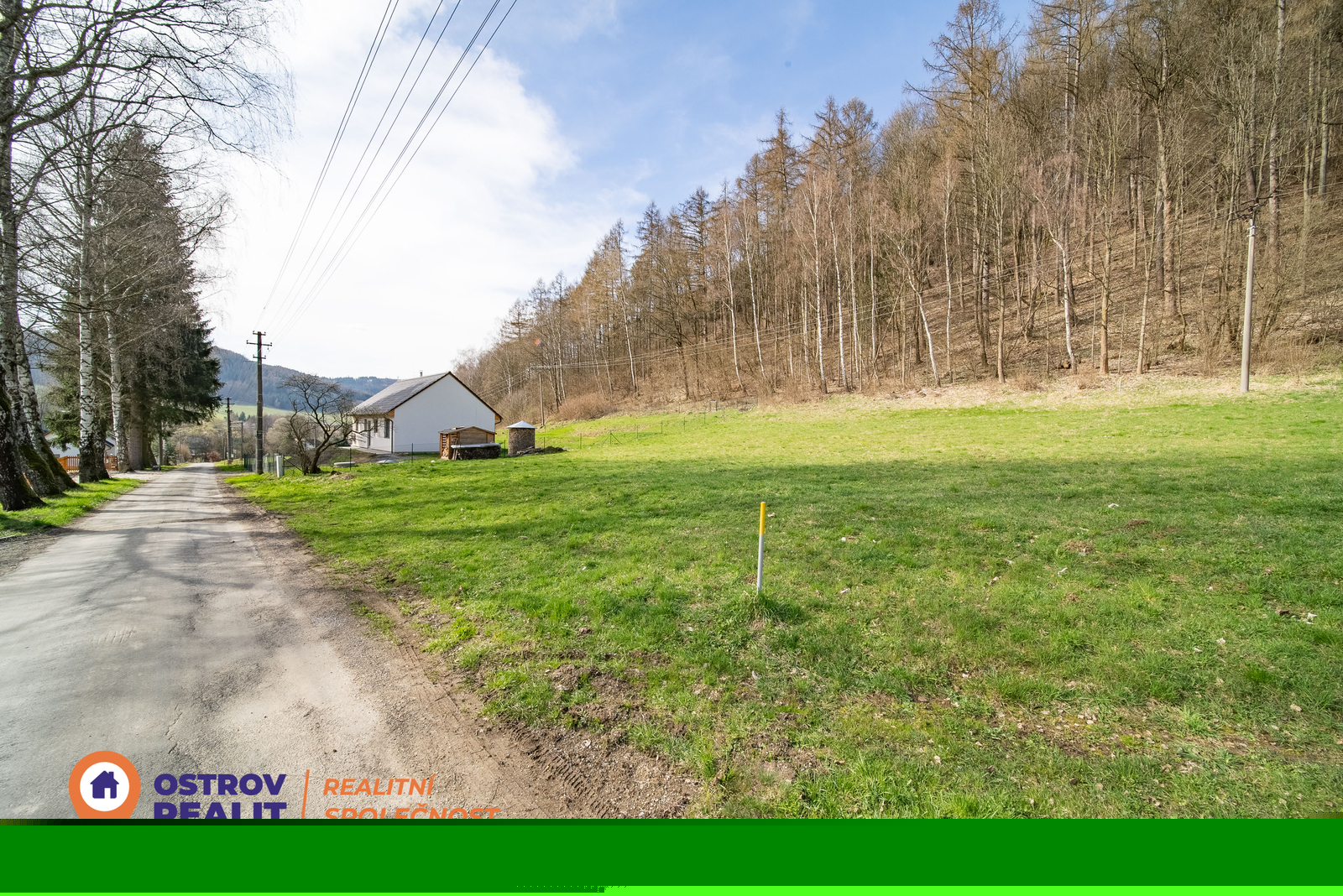 - komunikace: na podzim bude k pozemku vybudována nová asfaltová cesta a obec zároveň provede výměnu sloupů veřejného osvětlení