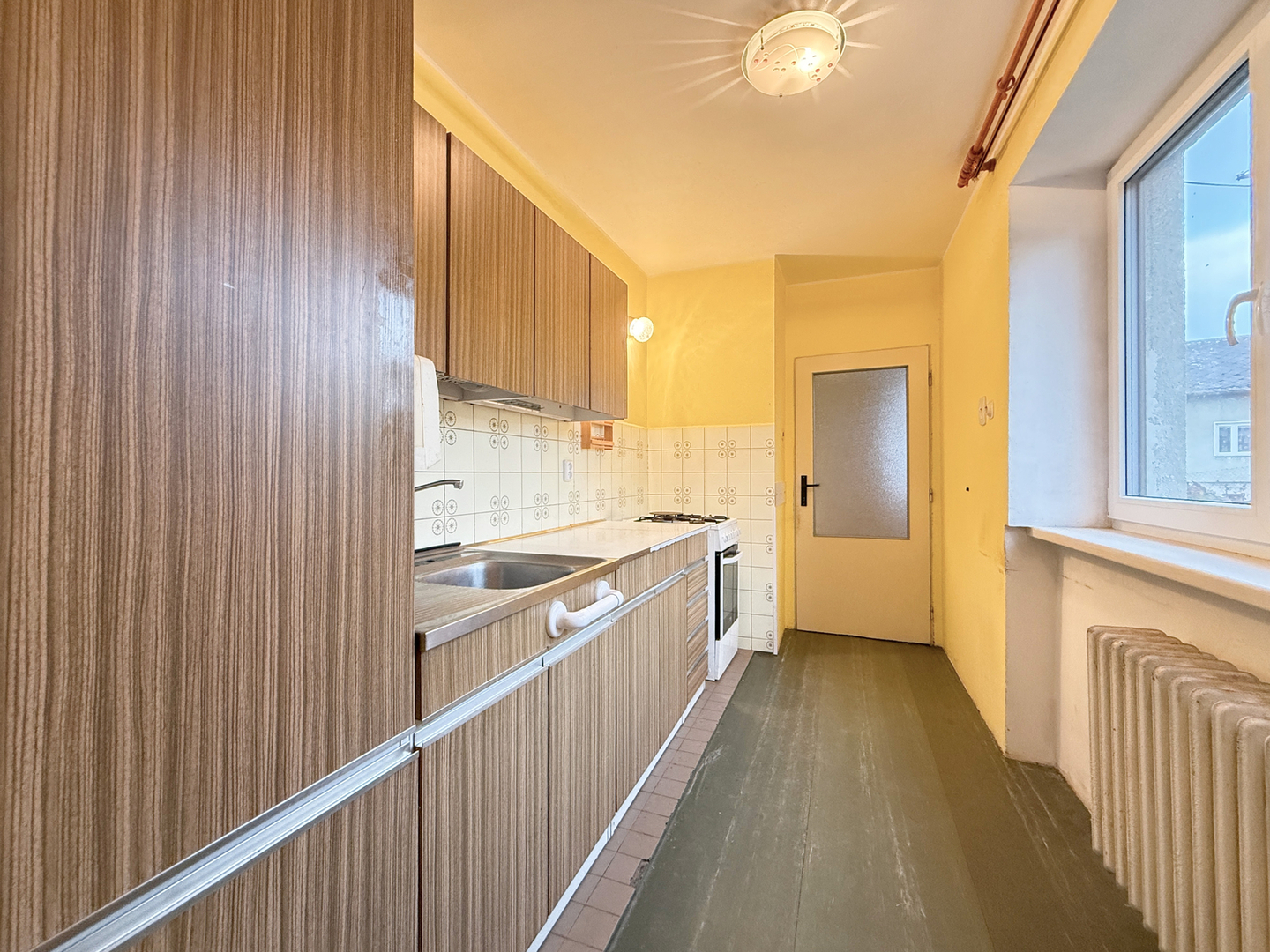 Menší chodbou projdete k samostatné toaletě a koupelně s vanou. Z chodby se dále dostanete do dvou samostatných pokojů, které nabízí soukromí a variabilitu – mohou sloužit jako ložnice, dětské pokoje, pracovna nebo hostinský pokoj. Každá místnost má svůj charakter a dostatek prostoru, aby se dala přetvořit přesně podle vašich představ. Byt má duši staršího domu, ale zároveň obrovský potenciál stát se moderním, útulným domovem plným světla a života. Z obytné části vede balkon ve tvaru L, ideální na letní snídaně nebo večerní posezení při západu slunce. V suterénu domu se nachází technické zázemí – kotelna, sklepy a další úložné prostory, které ocení každý, kdo má rád pořádek nebo potřebuje místo na všechno to, co se „ještě může hodit“.