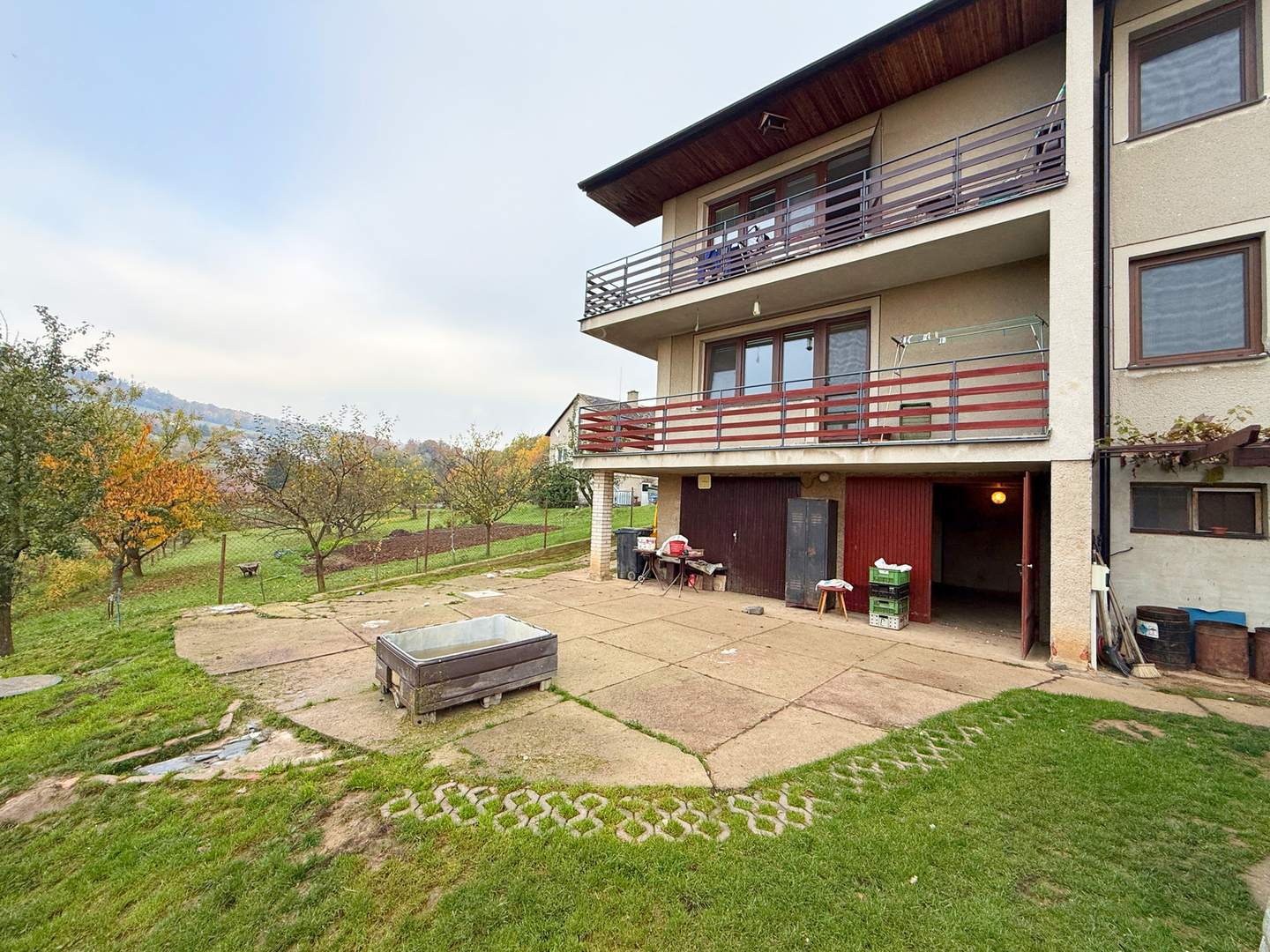 Hledáte domov, kde budete mít dostatek prostoru, kousek vlastní zahrady, garáž pro auto i místo, kde si konečně vydechnete? V rodinném domě se dvěma bytovými jednotkami nabízíme byt v přízemí o dispozici 3+1 s prostornou halou. K bytu patří také garáž, sklep a vyčleněná část zahrady, kde si můžete vypěstovat vlastní rajčata, udělat dětem pískoviště nebo si prostě jen užít klid s kávou a výhledem na přírodu.