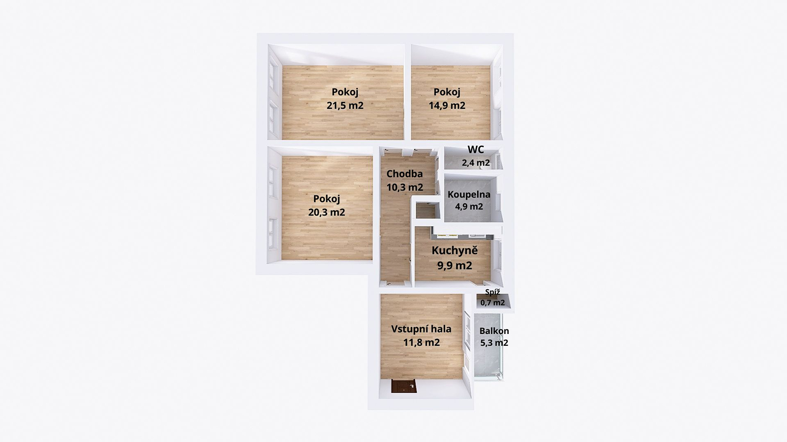 Mimořádně prostorná dispozice 4+1 – dostatek místa pro celou rodinu